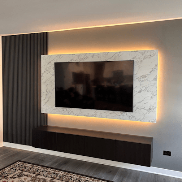 Custom accent wall design and installation that adds architectural depth and character to any room. Perfect lines, lasting style, local expertise.