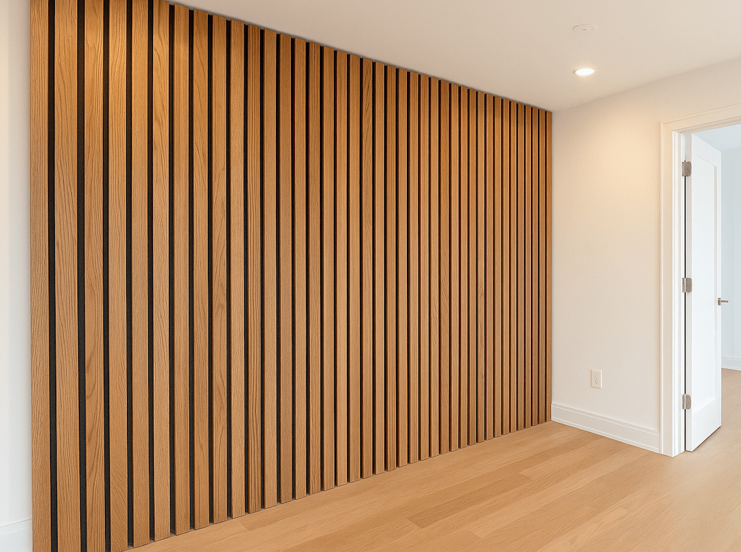 Stylish wood slat wall installations that absorb sound and transform spaces. Expertly crafted, noise-reducing, and installed with precision across Chicago Metro.