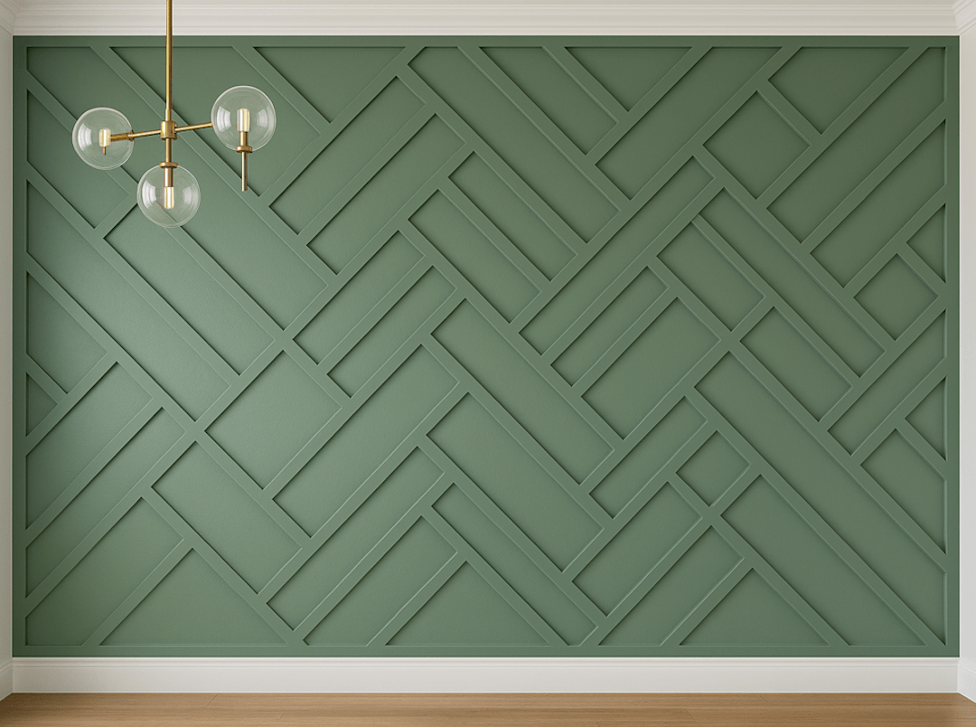 Includes layout design, MDF or wood trim, installation, caulking, and one coat of primer. Cost range reflects pattern complexity, material thickness, and final paint finish. Painting beyond primer or custom colors extra. Average installation time: 1–2 days per wall.
