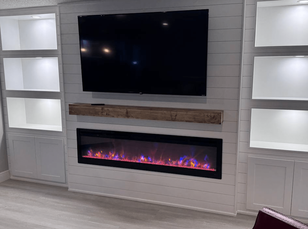 Our custom media walls seamlessly integrate your TV, lighting, shelving, and cable management into one beautiful statement wall.